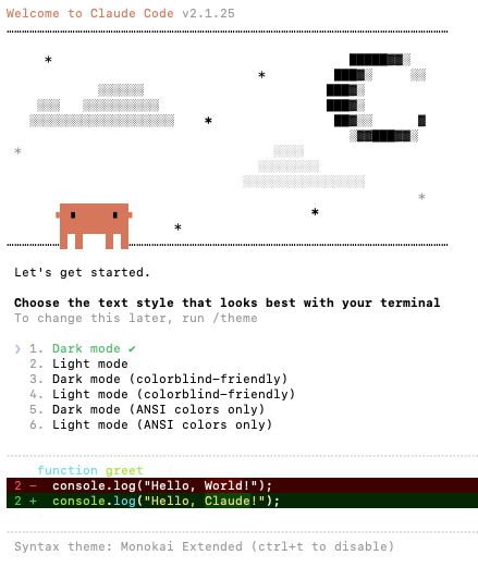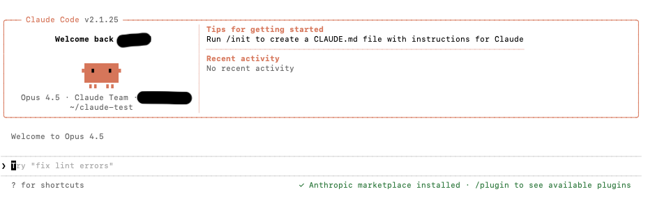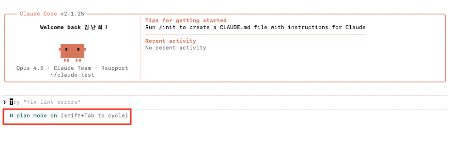 - 환영 메시지 “Welcome to Claude Code v2.25”