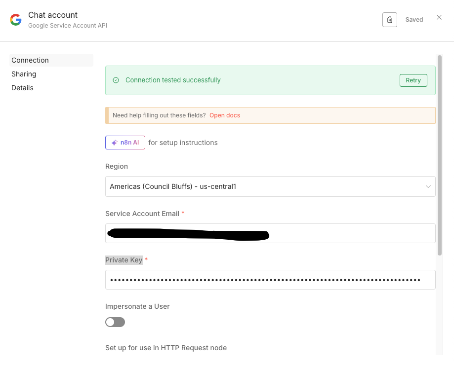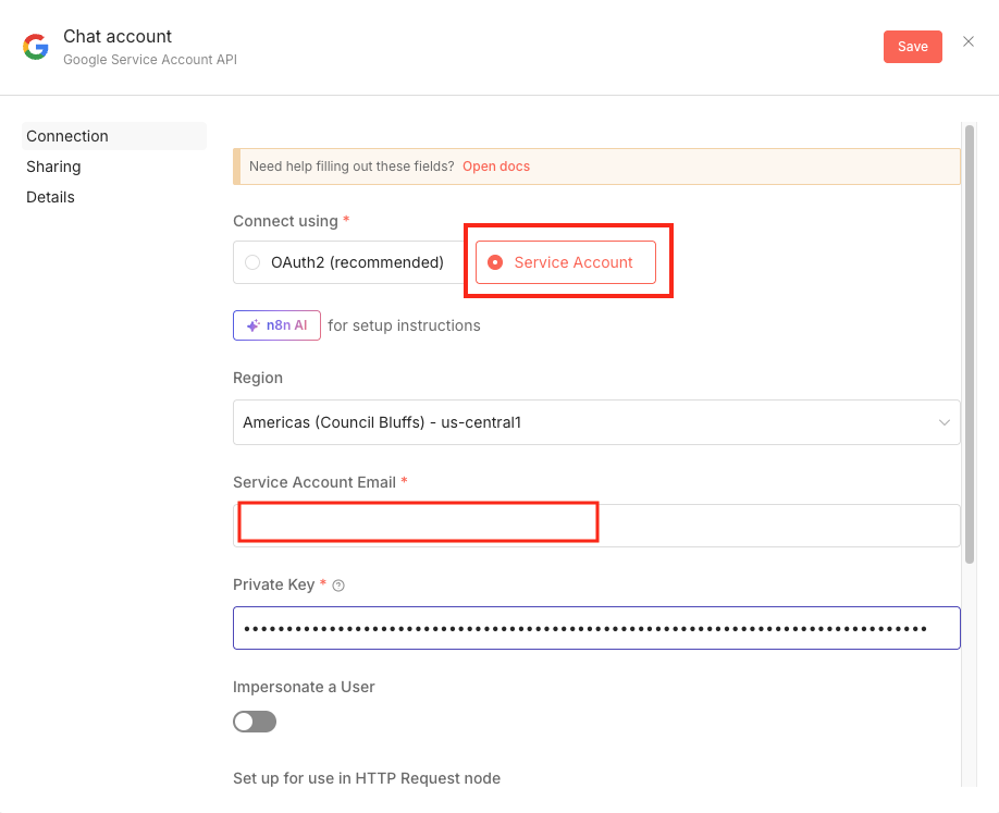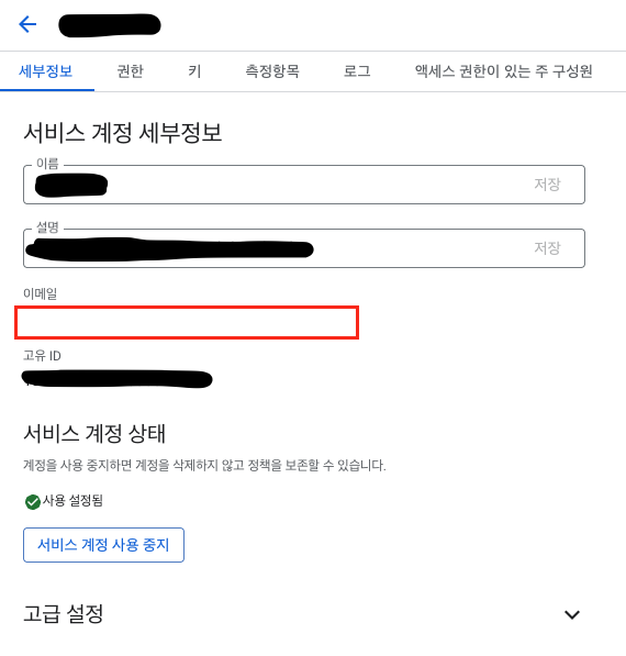 3. Service Account Email을 입력 해야하는데, 입력은 구글 클라우드에서 KEY값 생성할 때 세부정보에 있는 이메일 값이 필요하다