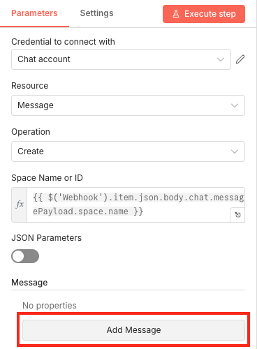 여기에 Webhook 데이터의 **messagePayload > message > thread > name**을 드래그해서 넣으세요.