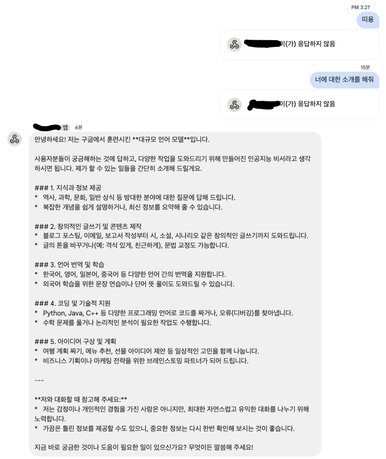 그러니깐, 채팅창에 Bot이 본인에 대한 소개를 작성해놨다